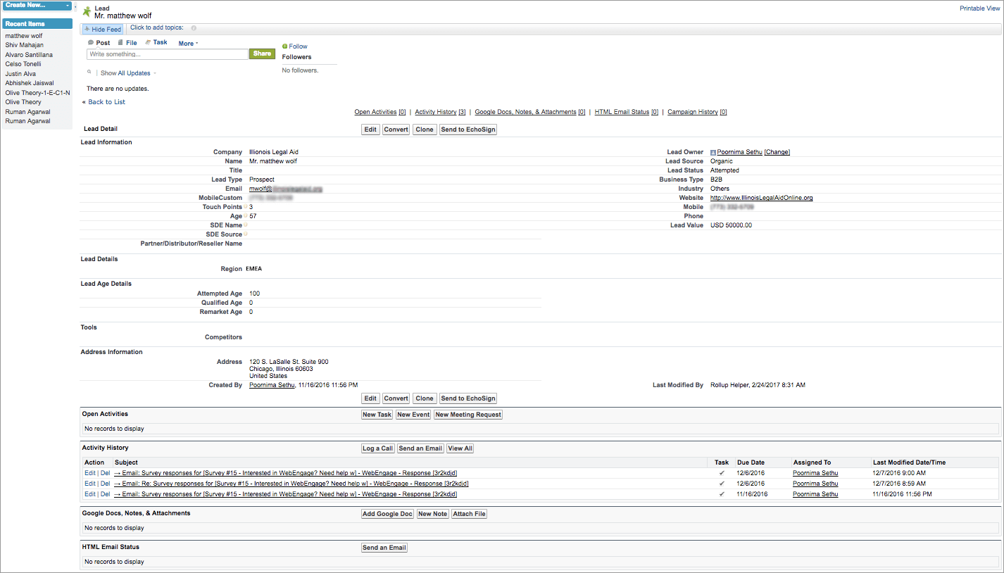 They further complement this data with browsing behavior and landing pages to grade the lead. This way they don’t have to build their database from ground up like B2C and can begin working immediately post integration with CRM.