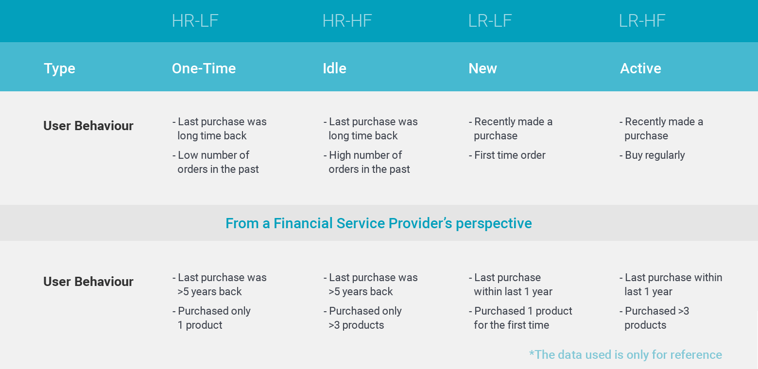 Here’s how the 2D RFM Model for a financial services company would look like: