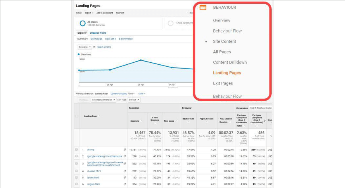 4. What are the top pages viewed during initial visits & where do they exit/drop-out? – so that interventions can be planned on these pages.