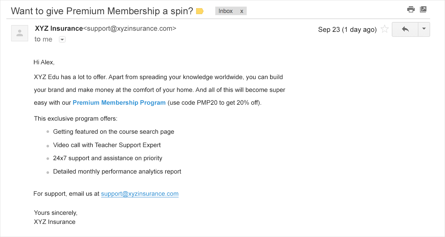 If Alex is not a Premium Users, an email for upselling premium membership will be sent.