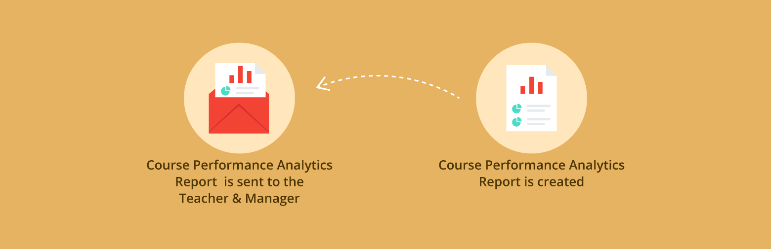 Once the course is live on the edtech platform, a Course Performance Analytics Report is periodically generated. This report includes metrics like total enrollment, engagement rate, percentage of course abandonment, total course completion etc. This report is forwarded to both the Teacher and Edtech Manager for analysis.
