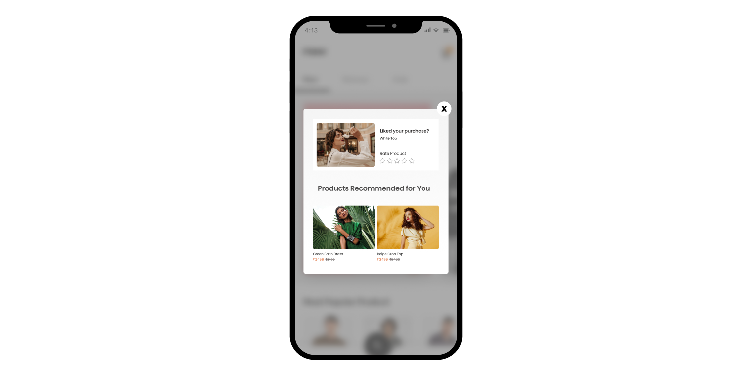 Personalizing the app experience is vital to drive engagement. Showing recommendations based on user actions such as past behavior and preferences, geography, demographic, purchases made, etc., helps customize the experience for each user and nudges users to make repeated purchases.