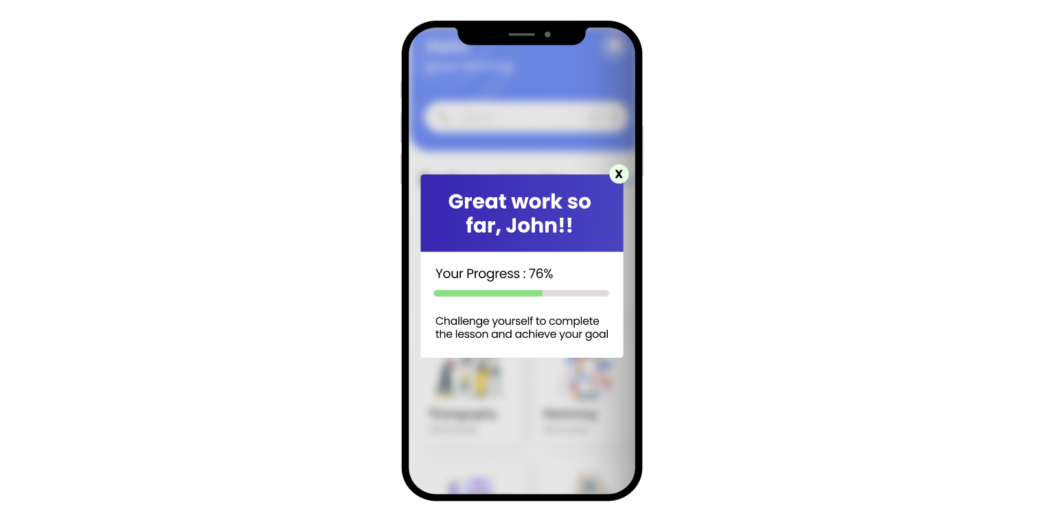 - EdTech: Encourage the user by highlighting the percentage of a task completed by them. For example, displaying a message stating, ‘you are X% away from achieving your goal; good going!’ This creates a sense of achievement and motivates the user to continue.