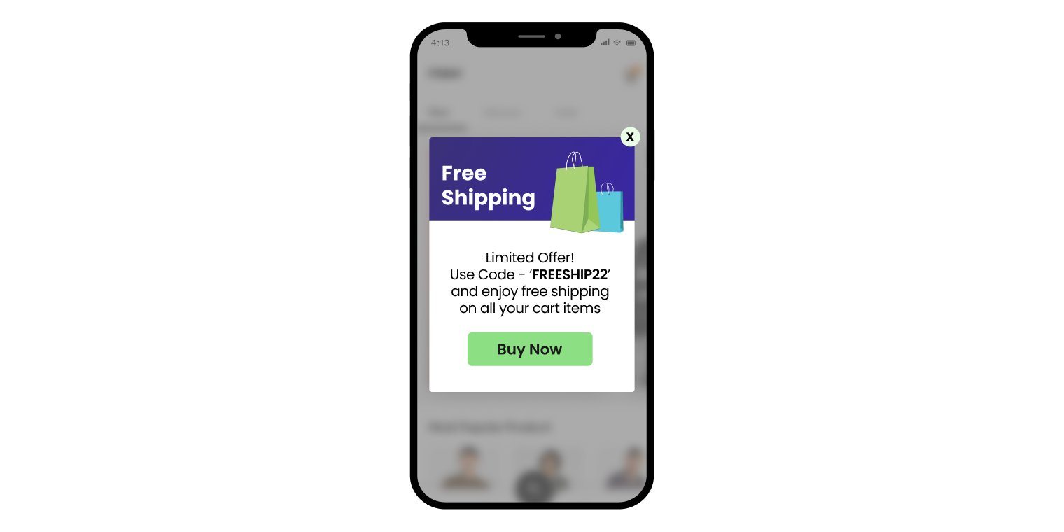 - E-commerce: You can incentivize the user by showing a free shipping in-app notification based on the user’s cart value or highlighting a favorable product review.