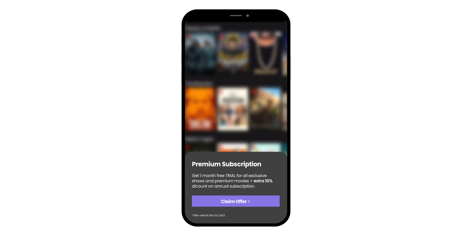 - Media & Entertainment: Certain users visit your site multiple times, view various subscription plans, and abandon the process at the last step. Based on the maximum time the user spends on the subscription screen or the app after browsing the subscription page, sending an in-app notification with exclusive perks and discounts can help persuade the users to purchase a subscription.