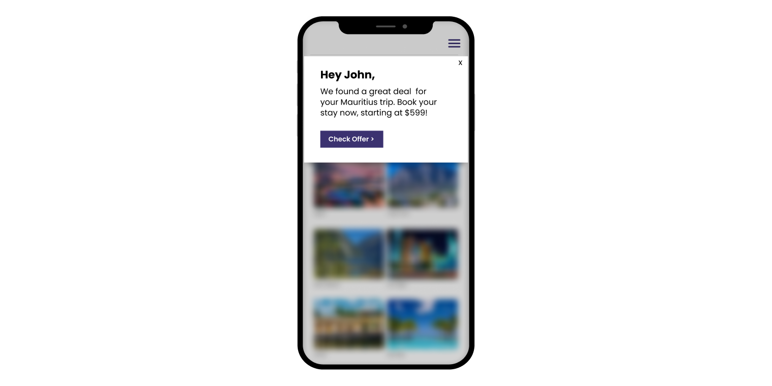 - Travel & Hospitality: If a user has been eyeing various destinations within a specific budget but has not finalized any of them, other factors, such as the number of days, hotels available, etc., may be causing the user to hesitate. Hence, providing customized suggestions will lead to more options and nudge the user into decision-making.