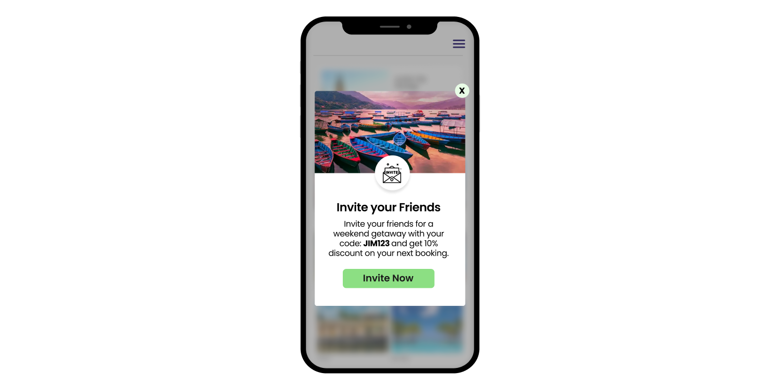 - Travel & Hospitality: Once a user completes a booking, show a referral in-app notification nudging the user to get some discount on their next transaction. This provides the user with an incentive to make a repeat booking and the referred user can be offered a discount on the first transaction as well.