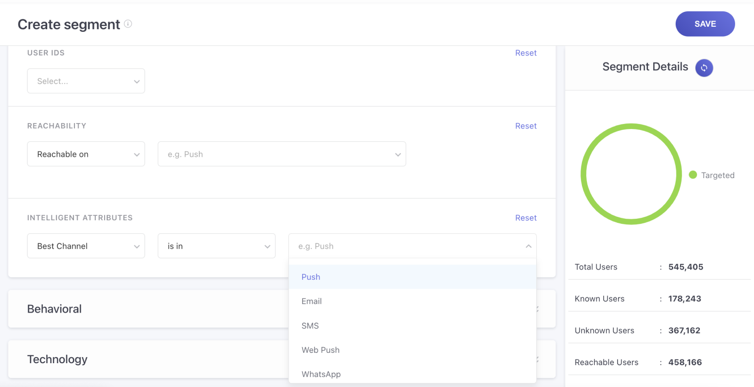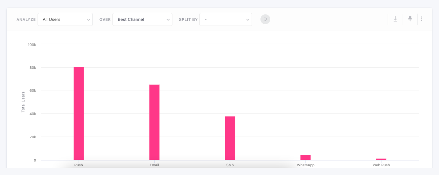 For example, if a user interacts with your push notification more than emails, it makes little sense to communicate through emails. This feature helps you increase engagement as users receive your communication on preferred channels. Also, keeping aside the costs involved in reaching out to the same users on different channels, it prevents you from spamming your users. Read our knowledge base for more information.