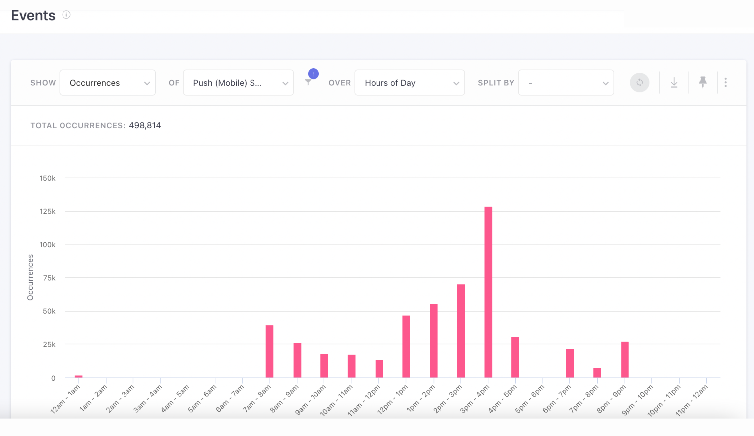 This feature can be used for one-time campaigns across channels -Email, SMS, WhatsApp, Push, and Web Push. Also, when there is not enough data for any user, our system falls back to a default slot derived based on previous campaign interactions of each channel. You can also access the performance of Send Intelligently from events, as shown below.