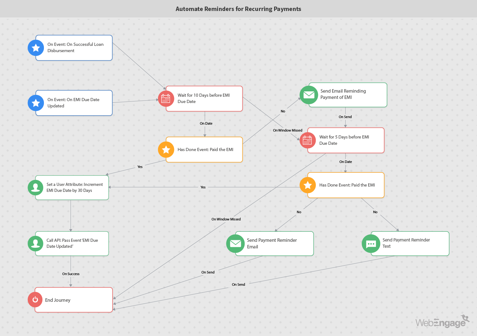 - The journey is triggered when the Loan is disbursed or the EMI Due Date for the user is updated.