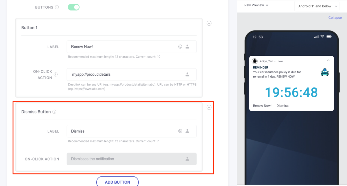 We have introduced Dismiss Buttons to make your user experience seamless. Say goodbye to the hassle of using key-value pairs or custom implementations. Our Dismiss Button support for Android push notifications provides a smooth and user-friendly way to dismiss sticky notifications that cannot be swiped.