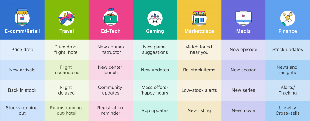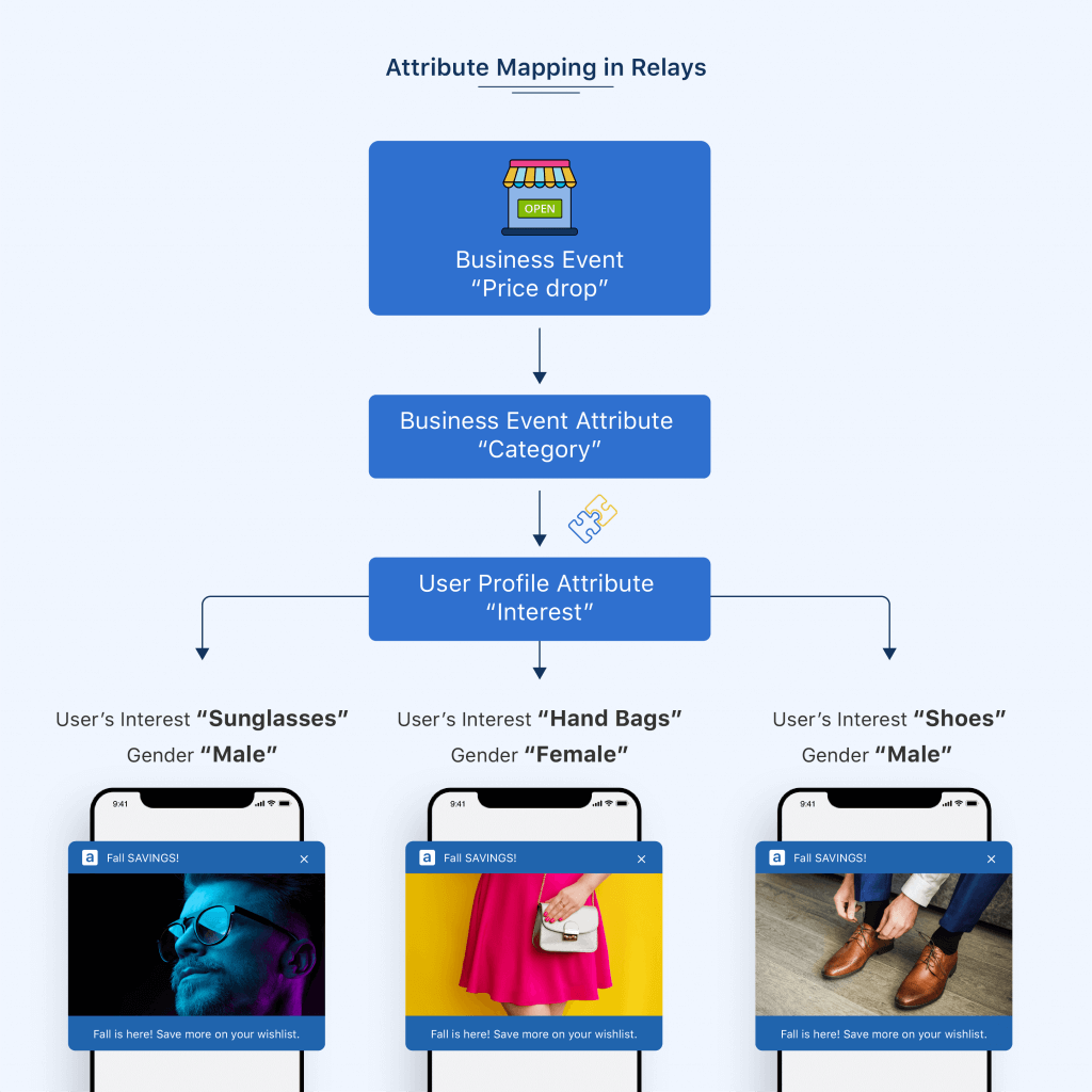 Relays helps you engage users based on business events. So far you’ve been engaging users based on something that the user did such as item added to cart, signed up, watched movie etc. Relays helps you engage your users based on something that happened at your end and not necessarily something that the user did. Think of these use cases in the table below. You can automate user engagement for all these use cases in seconds using Relays! No more creating ad hoc campaigns multiple times a day to target these use cases!