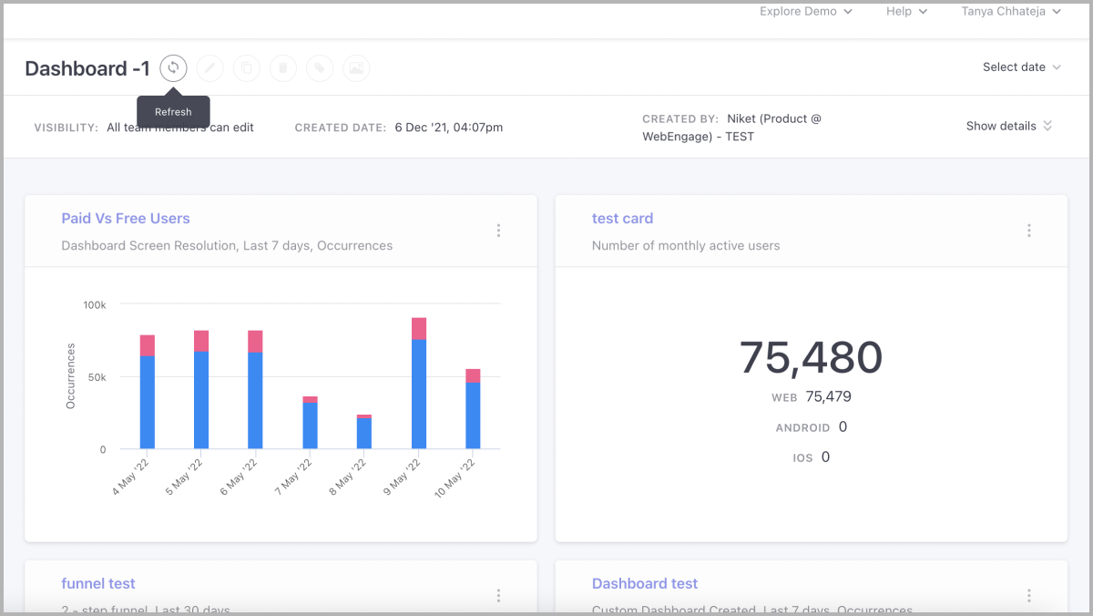 And, we have also added a ‘Refresh’ option at the top to allow you to fetch the latest data in the Dashboard.