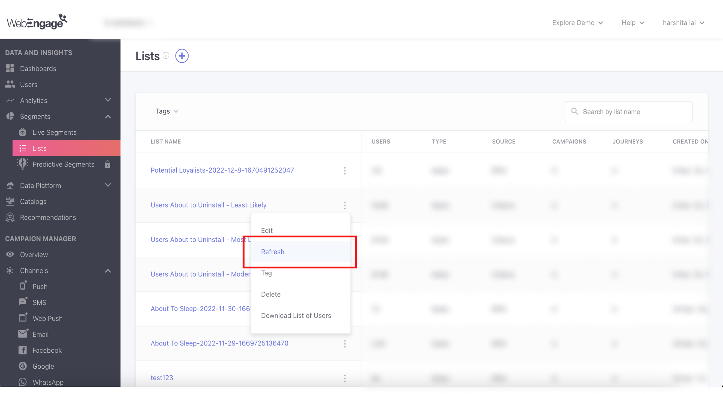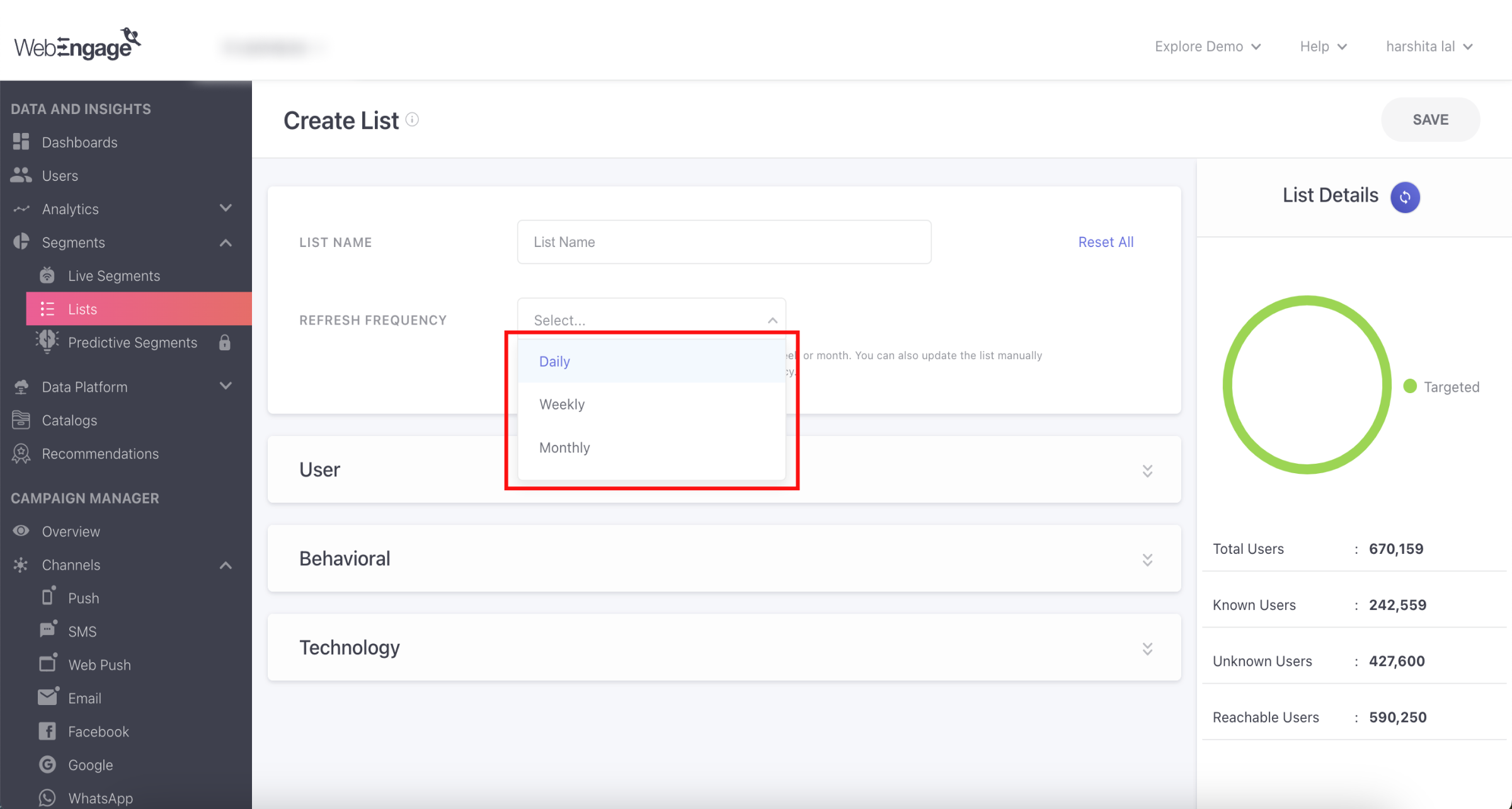 You can now refresh any criteria-based list on a periodic basis (daily/weekly/monthly) or on-demand as per your requirements (example: your list of “flight search abandoned” users can be refreshed at 8 am on the last day of every month before sending out your payday campaigns).