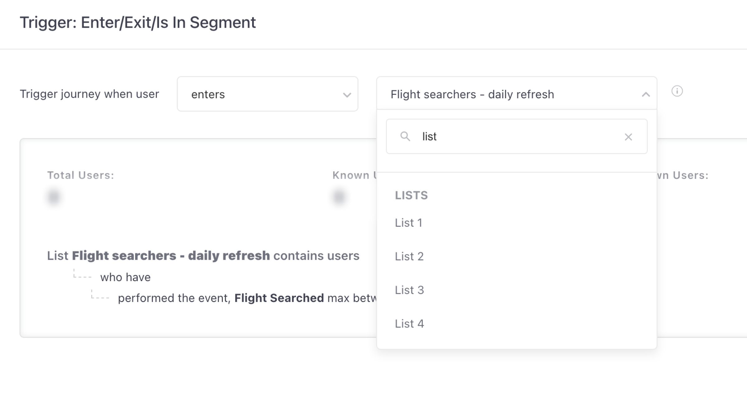 You can now make users enter or exit a journey on the basis of their entry or exit from a refreshing list or predictive segment.