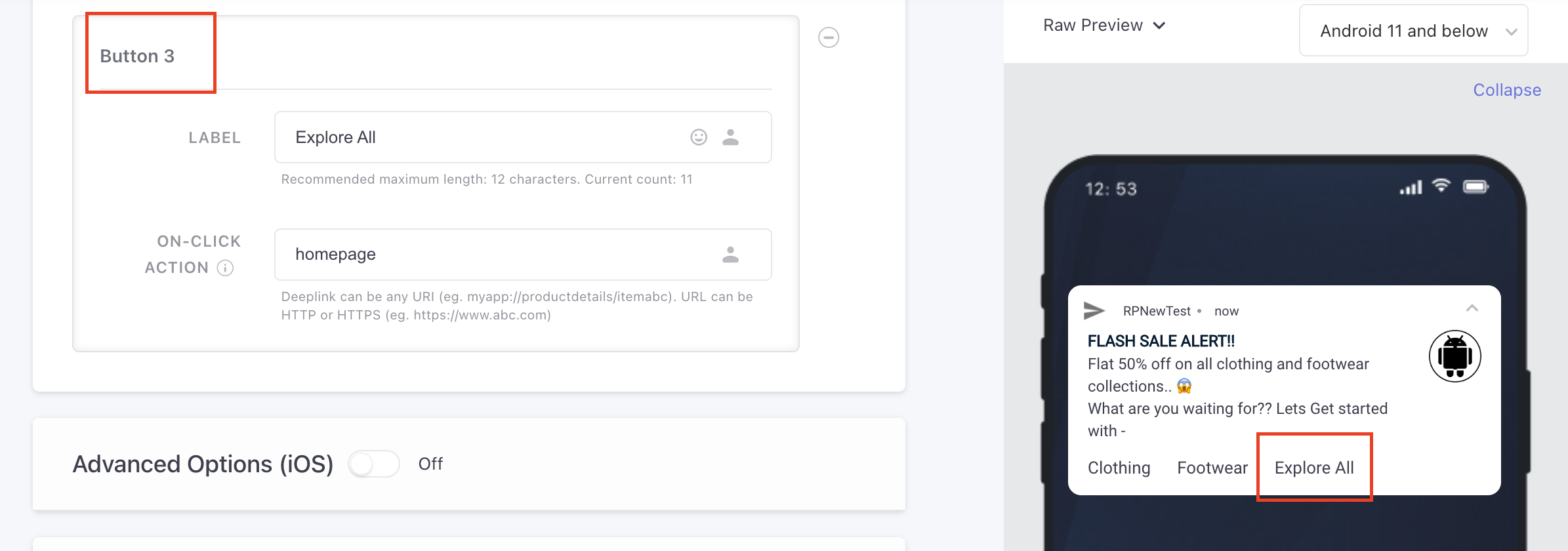 Instead of 2 buttons, clients can now add 3 buttons in Android Push notifications.