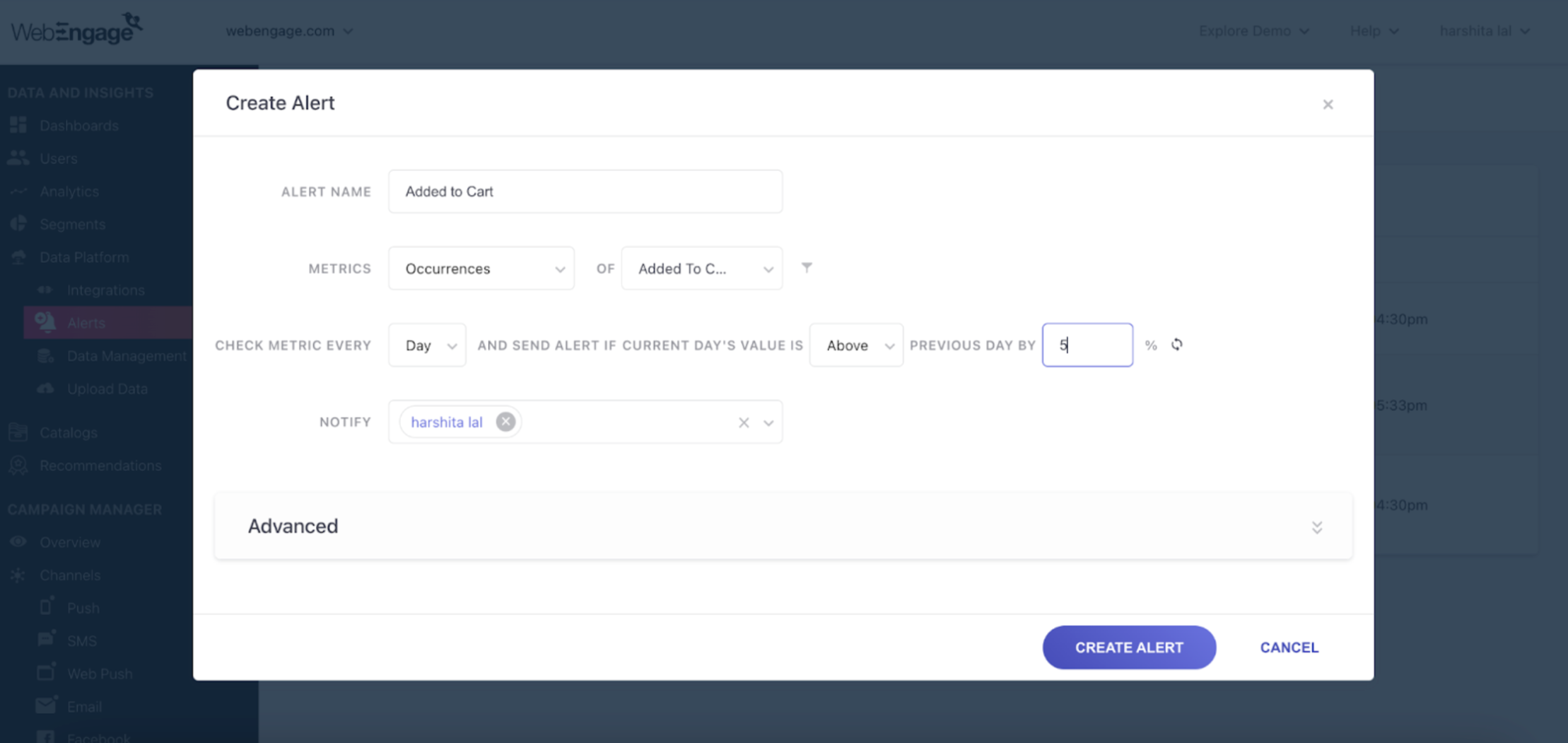 Discovery and alert set-up on your WebEngage dashboard can be done in two ways: