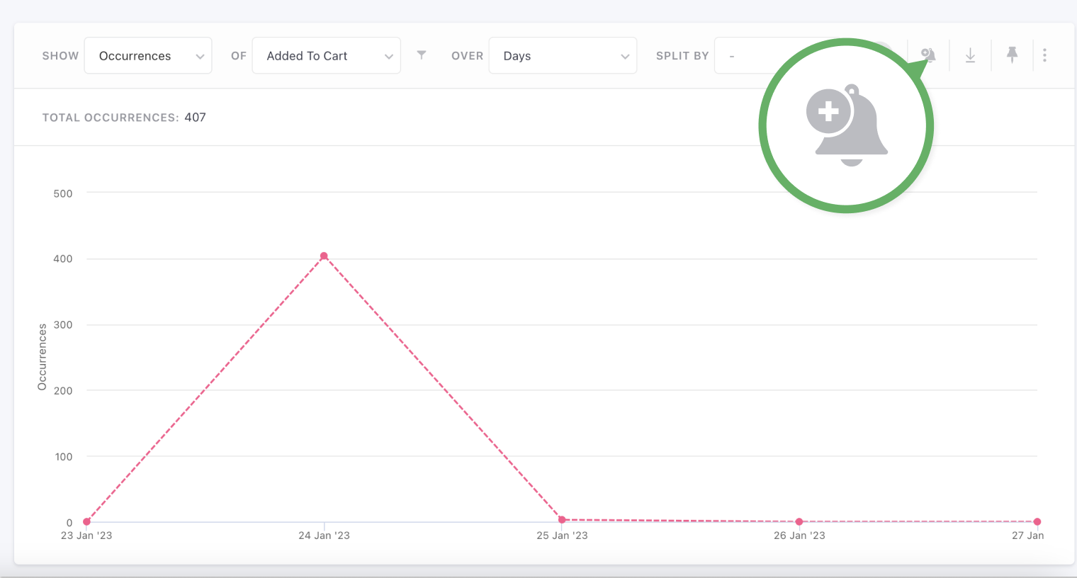 1. When looking at specific event analytics, you can select the alert option and create a custom alert for that specific event.