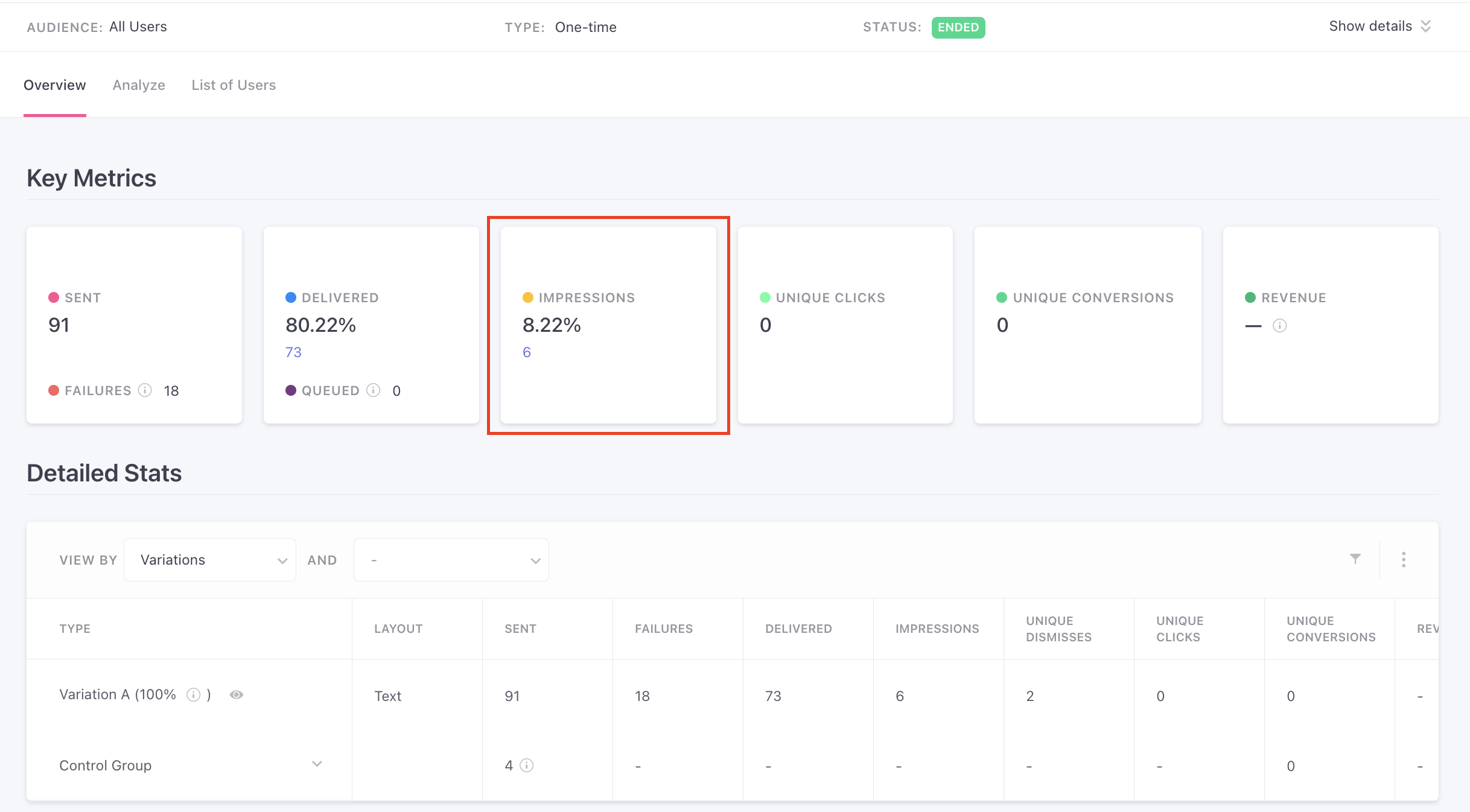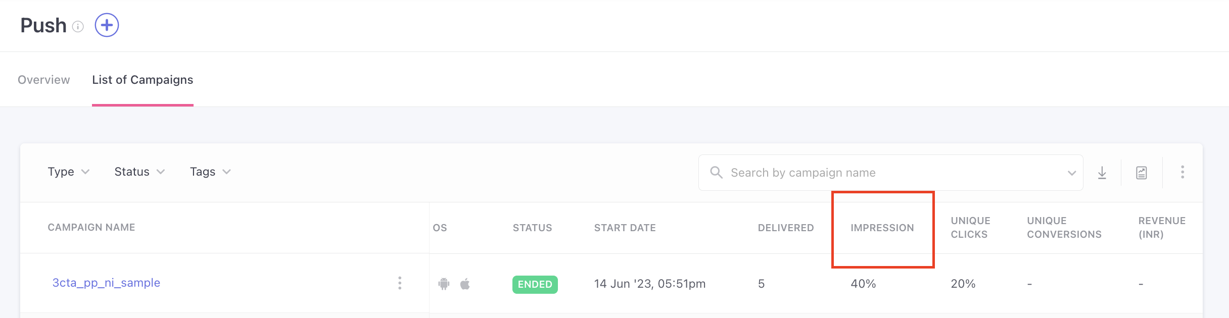 Mobile Push Impression Metrics Added on the Campaign Overview and Listing Page