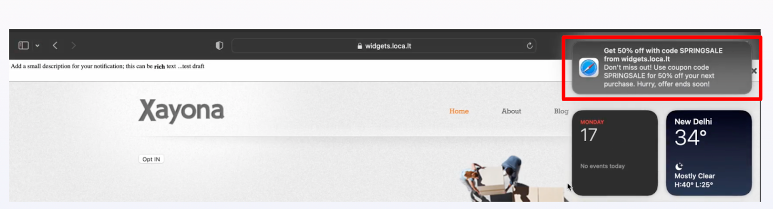 With recent updates on MacOS (v13+) and iOS (v16.4+), web push is now supported on Safari browser version 16+ and requires a multi-step opt-in process.