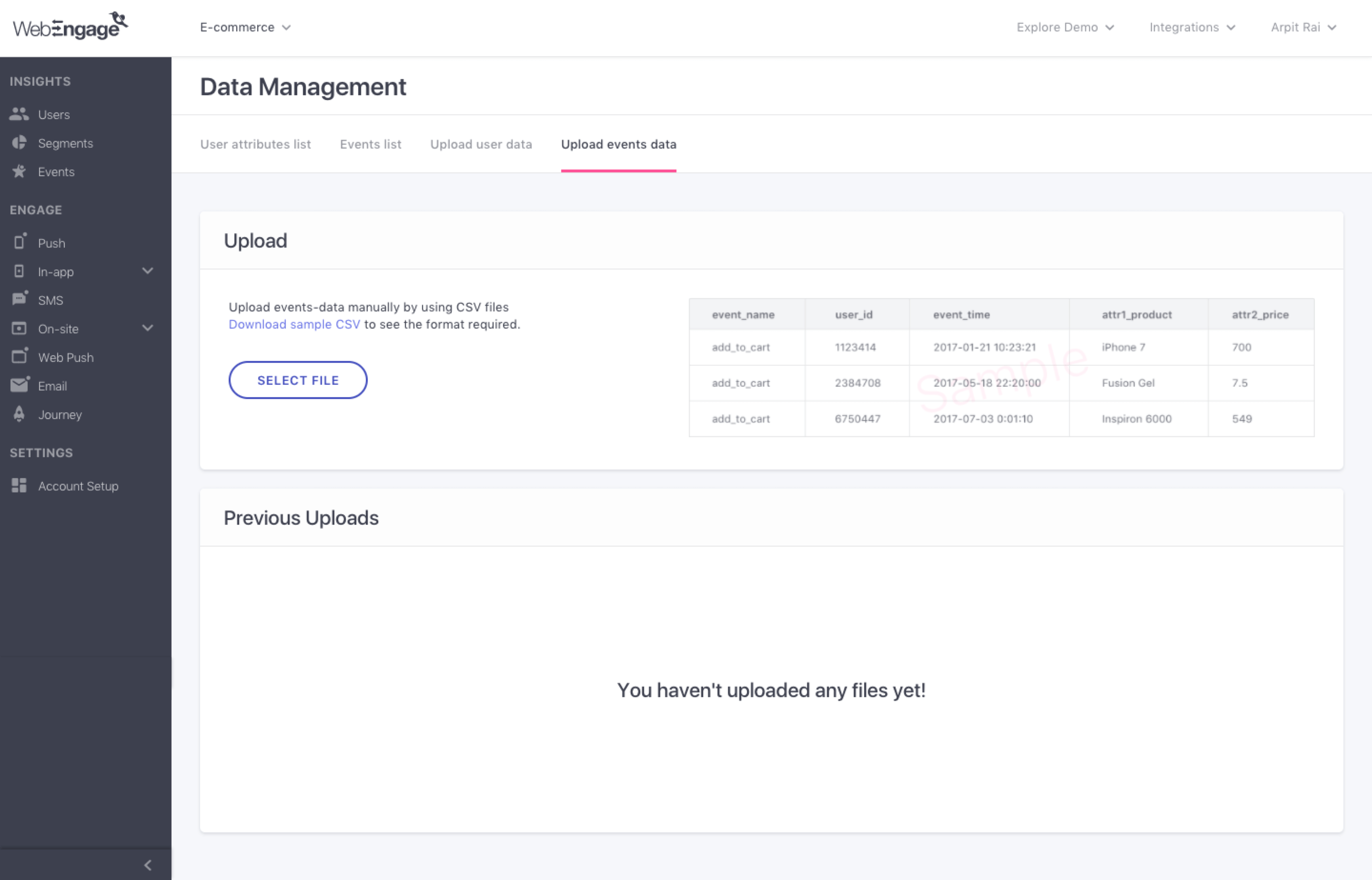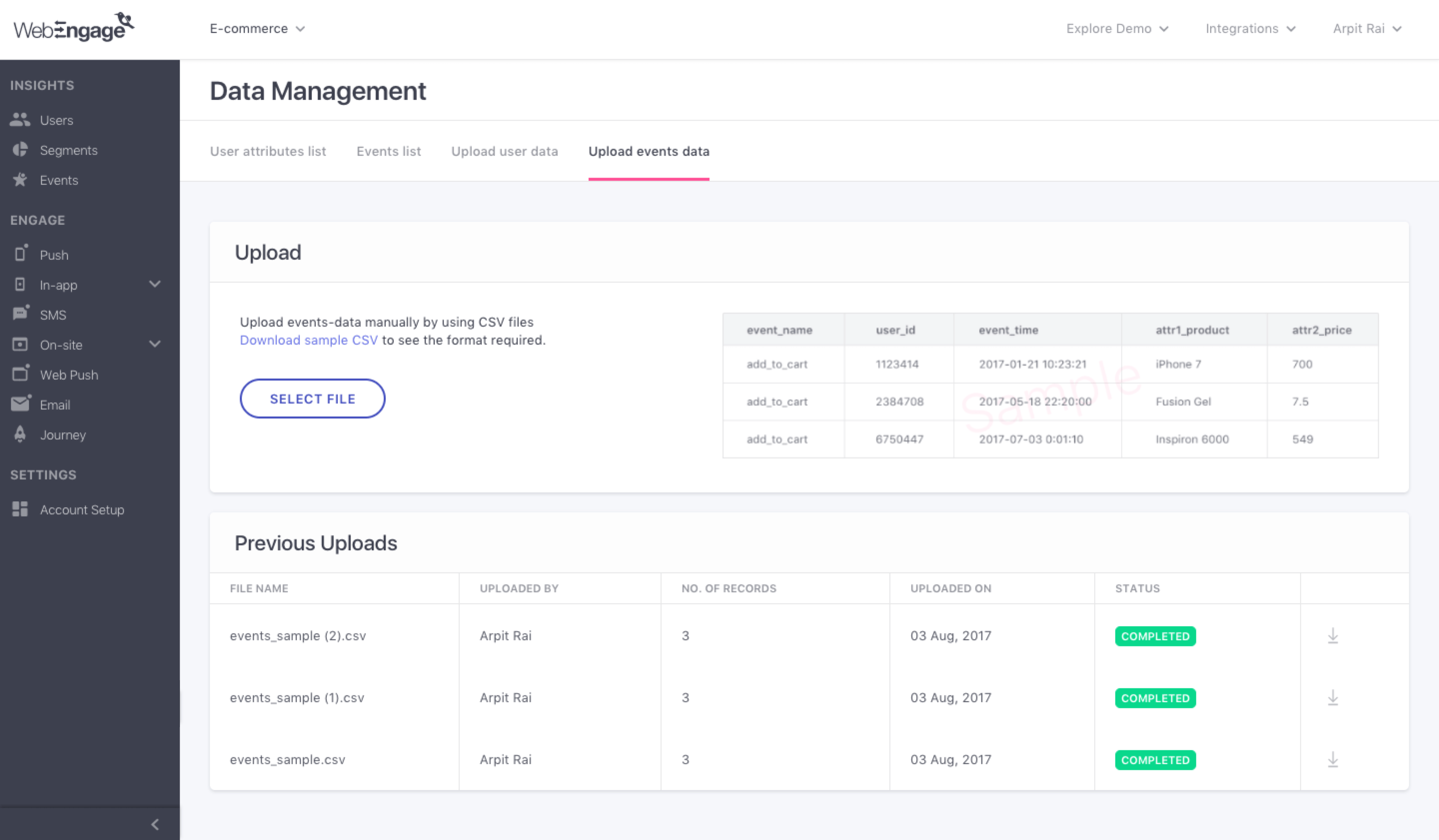 CSV uploads makes life so much easier for the business folks when they need to send user and events data on an ad-hoc basis to WebEngage. Period.