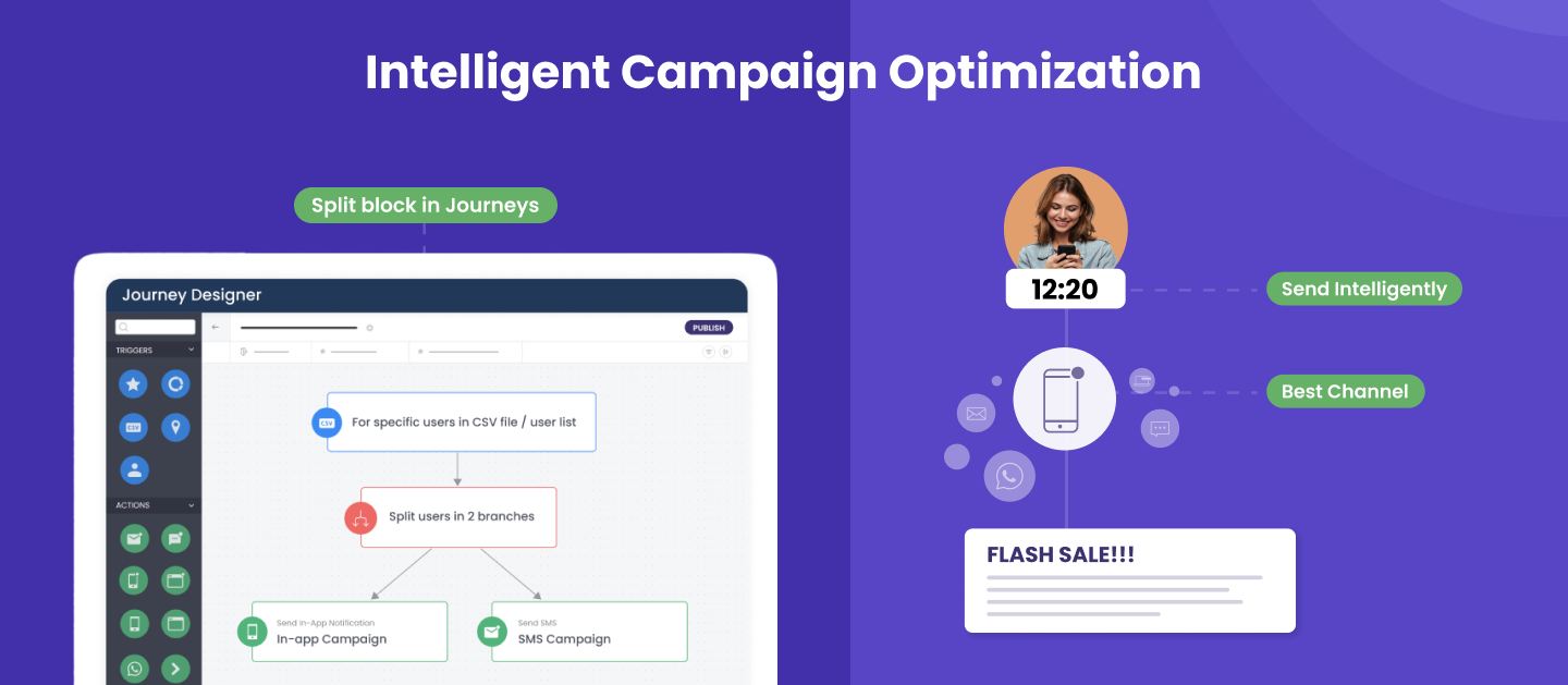 We also introduced a split block in journeys and relays to go beyond A/B or variation testing, split users and optimize journeys in real time. You can use this block to test different send time or channel strategies. Refer to our blog for a detailed read on this feature.