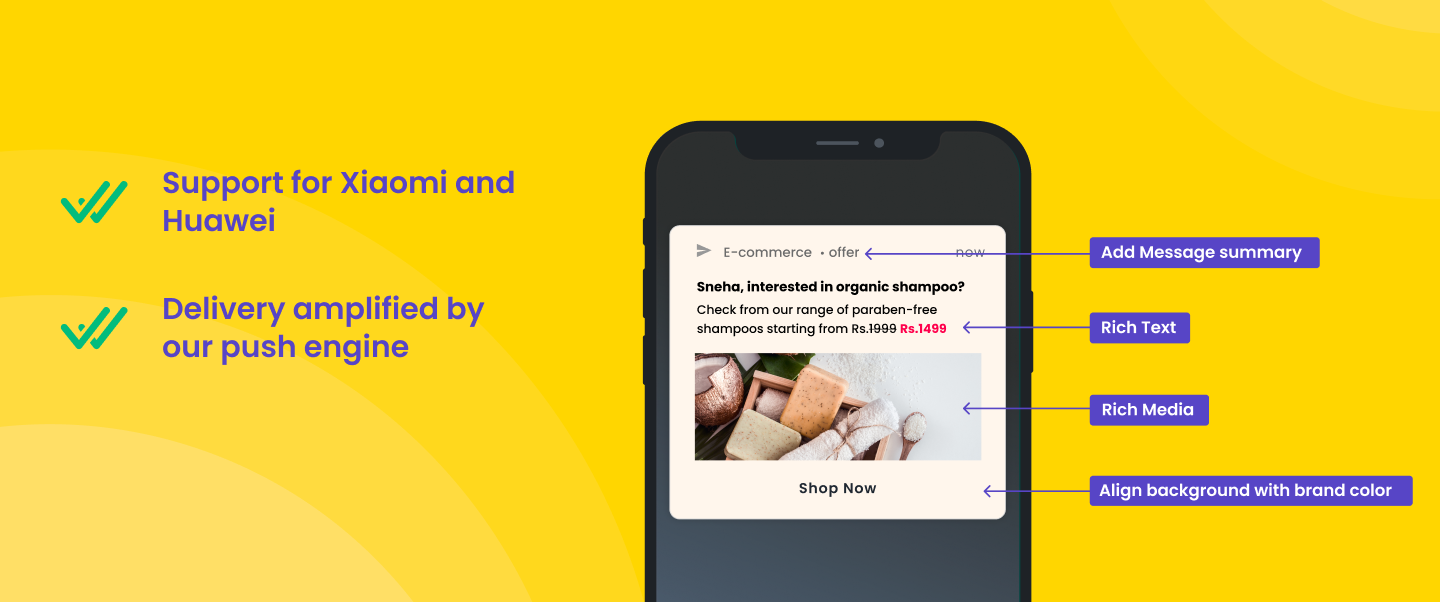 We introduced support for Chinese devices such as Xiaomi and Huawei on the delivery end to enhance push notification delivery. Combined with our amplification engine, it can augment the delivery of your push notifications by up to 75%. To know more about it, read our blog.