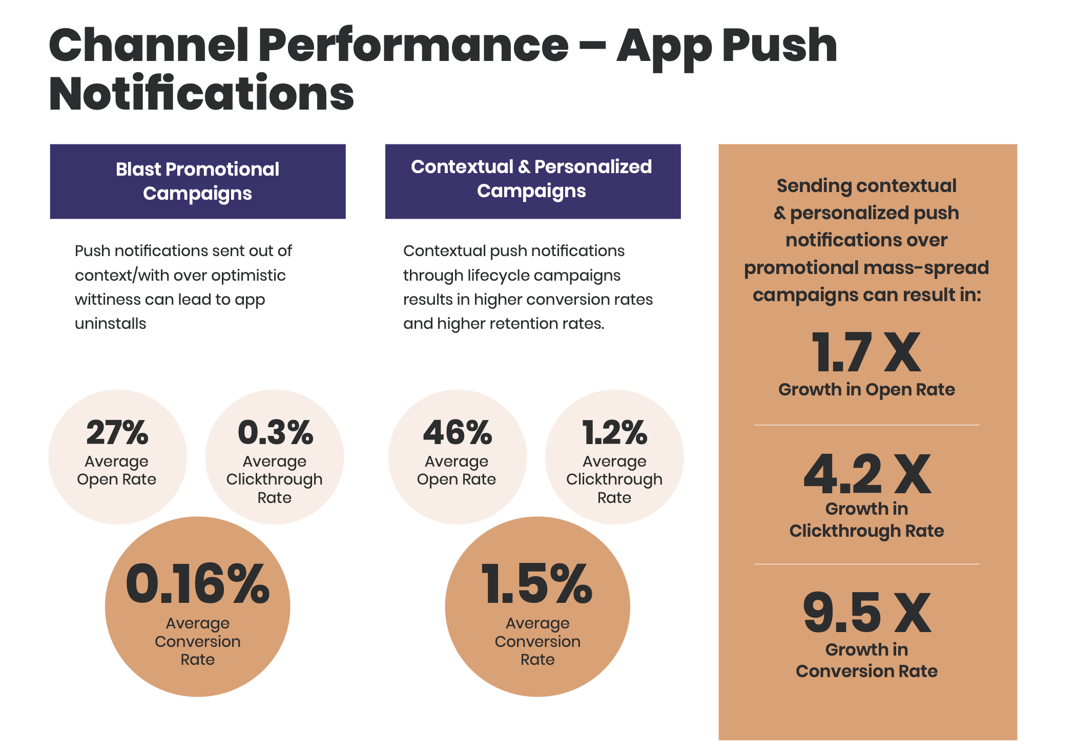 And all of a sudden, you’re in a position to send rich media in your messages, ensure higher click-through rates via personalized communications & nudge your users to take action at the right time for your desired events.