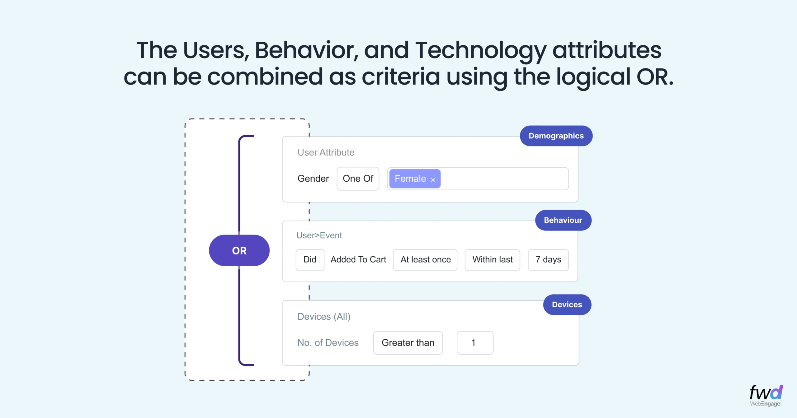 - “Purchased in the last 7 days AND has affinity for Sneakers”