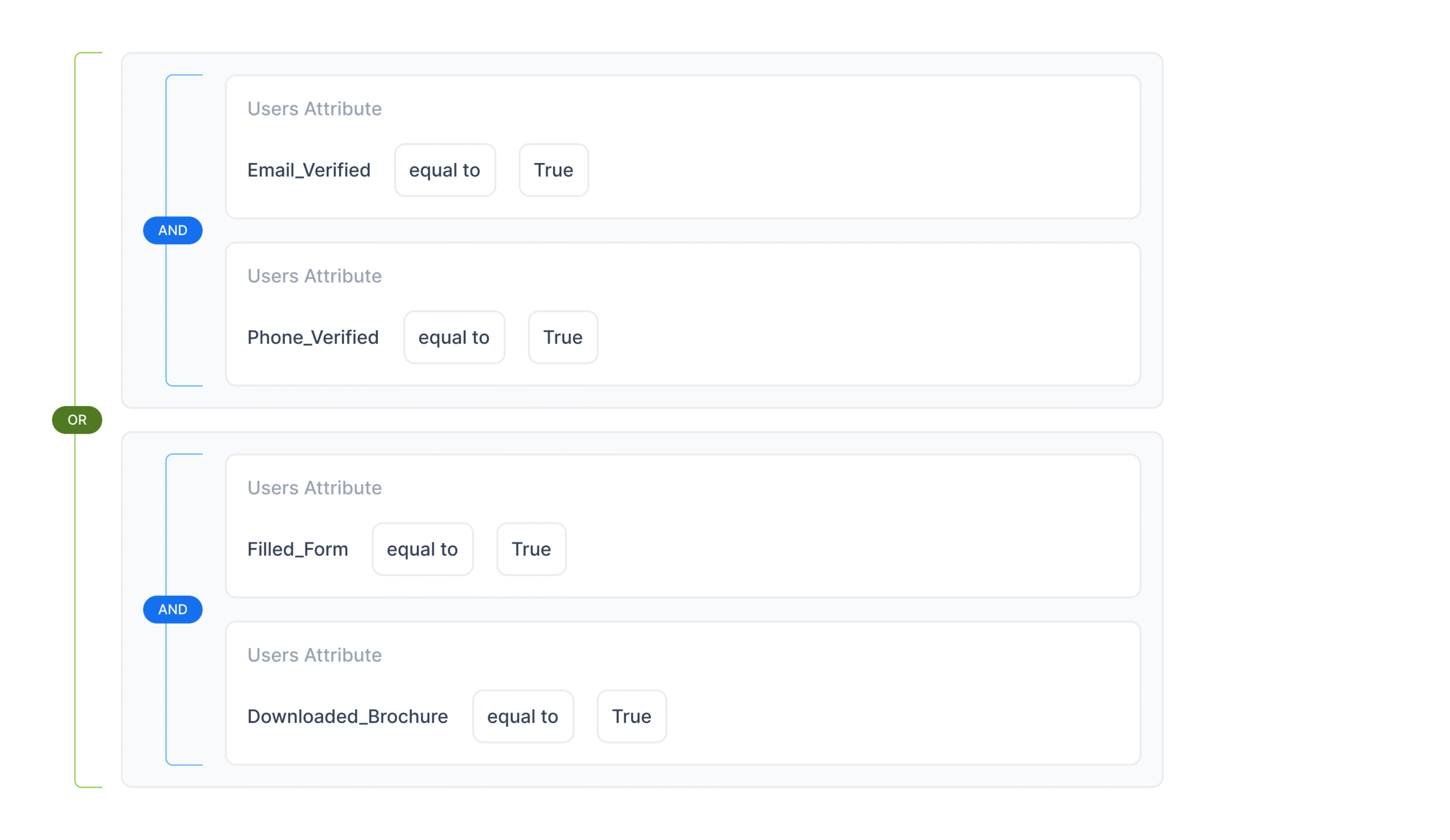 (High Intent OR High Spend) AND (Recent Activity OR High Reachability) all in one flow, without hacks, workarounds, or awkward nesting limits.