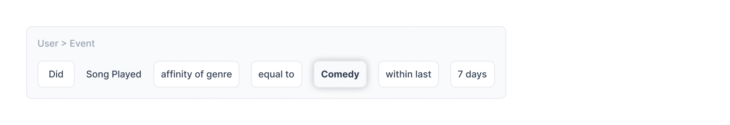 Define conditions exactly the way you want to combine events, user attributes, realised variables, and derived attributes with ease.