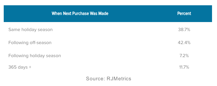 What’s more important to note is that nearly 38.7% of customers make a second purchase within the next 30 days of their first purchase. Now this gives ample of opportunities to you to remarket to segments of holiday marketing campaigns.