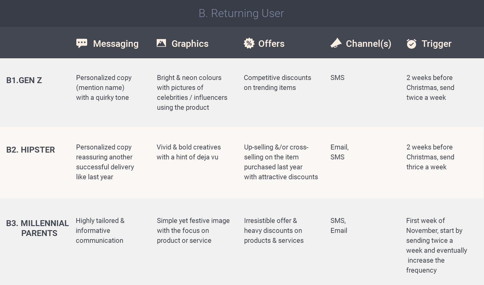 - People who interacted with your brand and/or retail platform last holiday season (i.e. in 2015) and are paying you a visit after a year-long of lull.