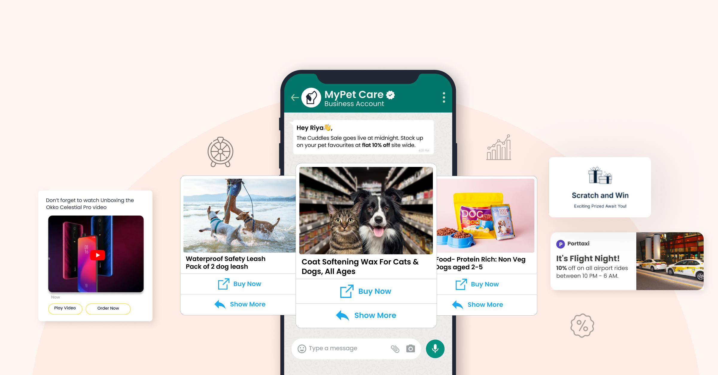 - Enhanced Button Capabilities: Add up to 10 buttons, including quick replies and call-to-action buttons.