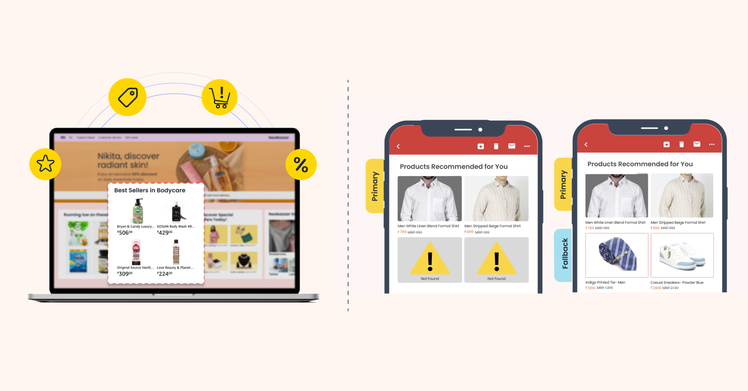 Ensure users see relevant suggestions even if the primary strategy doesn’t have enough items. Add up to 3 fallback recommendations (Relevant, Personalized or Static), in order of priority to ensure a seamless experience.