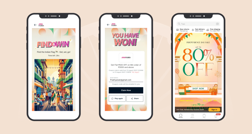 What I saw: Static banners inside apps, highlighting Independence Day deals for Savanah. However, Nykaa fashion did come through with its gamification, this is my other 10/10 for the day.