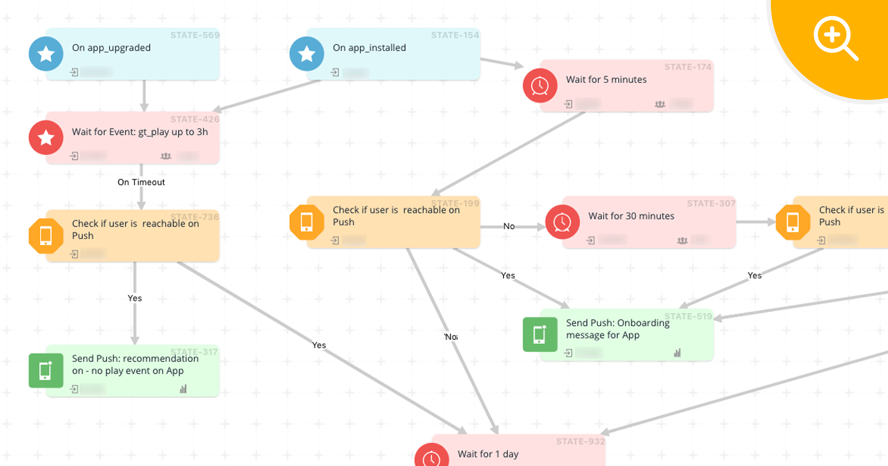 Post app installs, the system waits for 5 minutes. On timeout, it carries out a check to confirm the user’s availability on the push channel. If the availability is negative, the same check is carried out again after a 30-minute gestation period. The system checks if the user is available on the push channel and serves a push notification to the user: