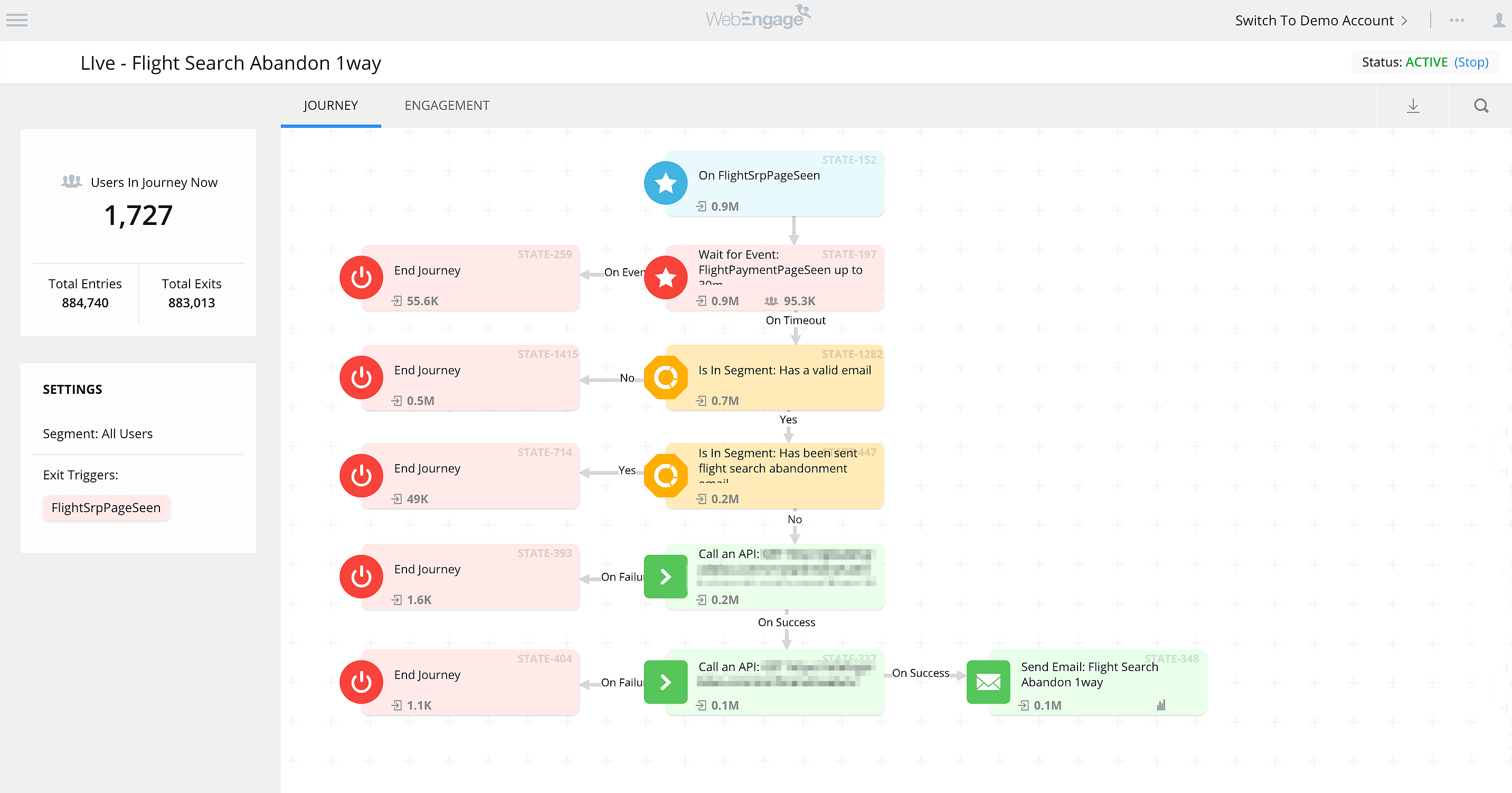 The Journey begins when a user searches for a flight or a hotel on their app and/or website. A window of 30 minutes has been created within which the user is expected to make a purchase. If that condition is not fulfilled, then an email is triggered, containing details based on the user’s behavioral history.