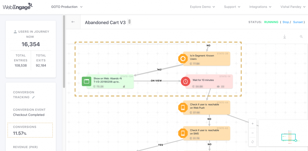 It becomes irritating for users to receive multiple messages from the same website with different contexts. It may achieve the opposite of the intended effect – user gets confused and unsubscribes, uninstalls and abandons your brand completely. That is why it is important to introduce checks that prevent a user from getting notifications in multiple references from the website. Using WebEngage, Goto.com implemented filters to prevent users who are part of more than one journey from getting messages in more than one context.
