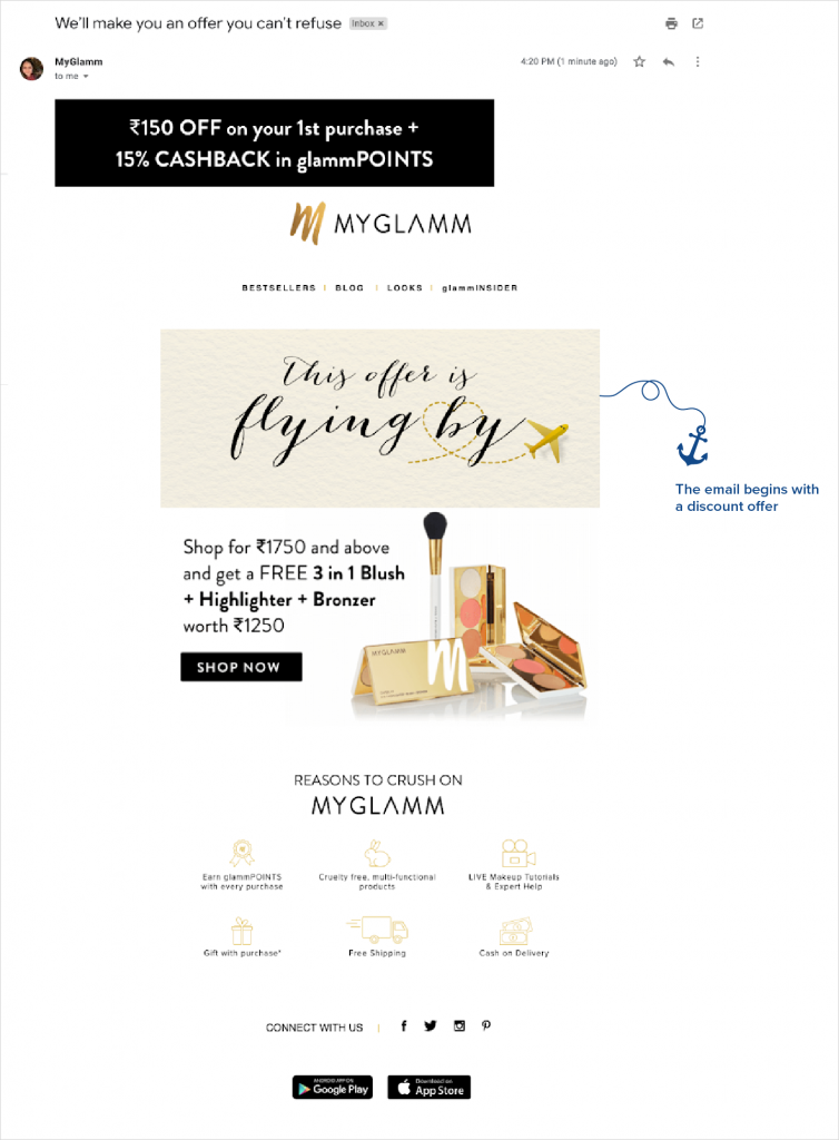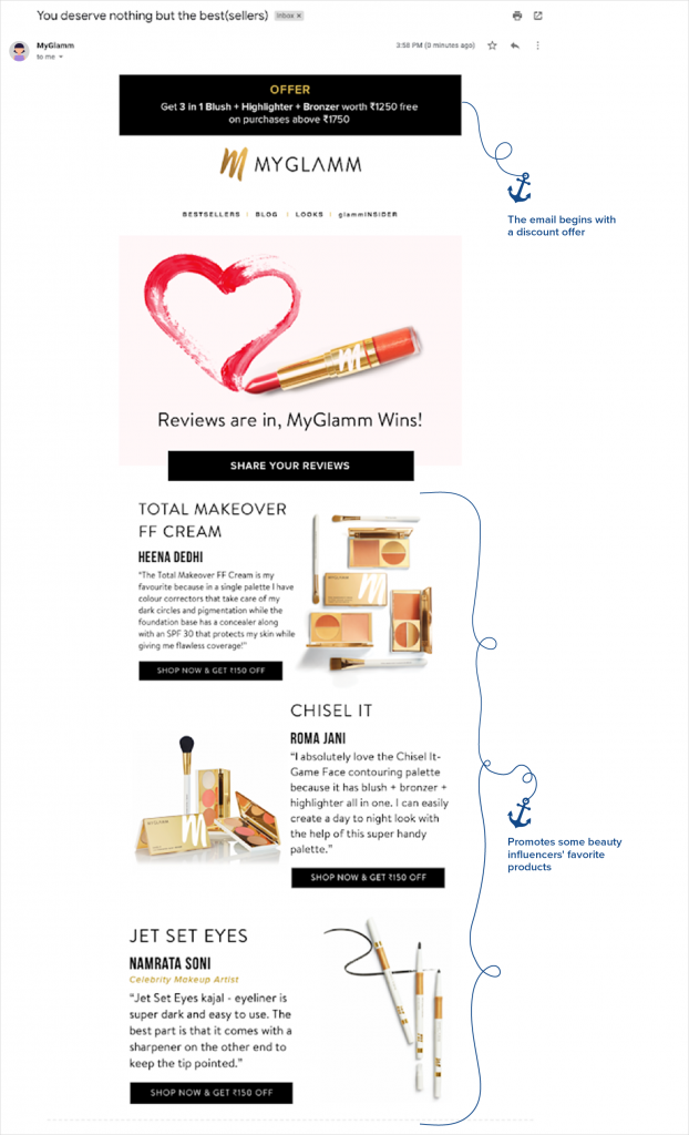 Simply put, MyGlamm aims at making every user’s buying experience with MyGlamm absolutely delightful, hassle-free and memorable. Clearly, customer experience is at the epicenter of their brand strategy. So, MyGlamm focused on delivering exceptional user experiences with targeted and highly-personalized marketing which helps them: