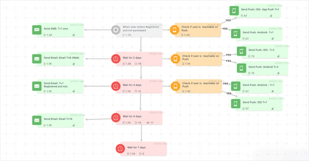 This journey had a number of conditions, campaigns, and different wait periods, considering the nature of the target audience that this particular segment catered to.
