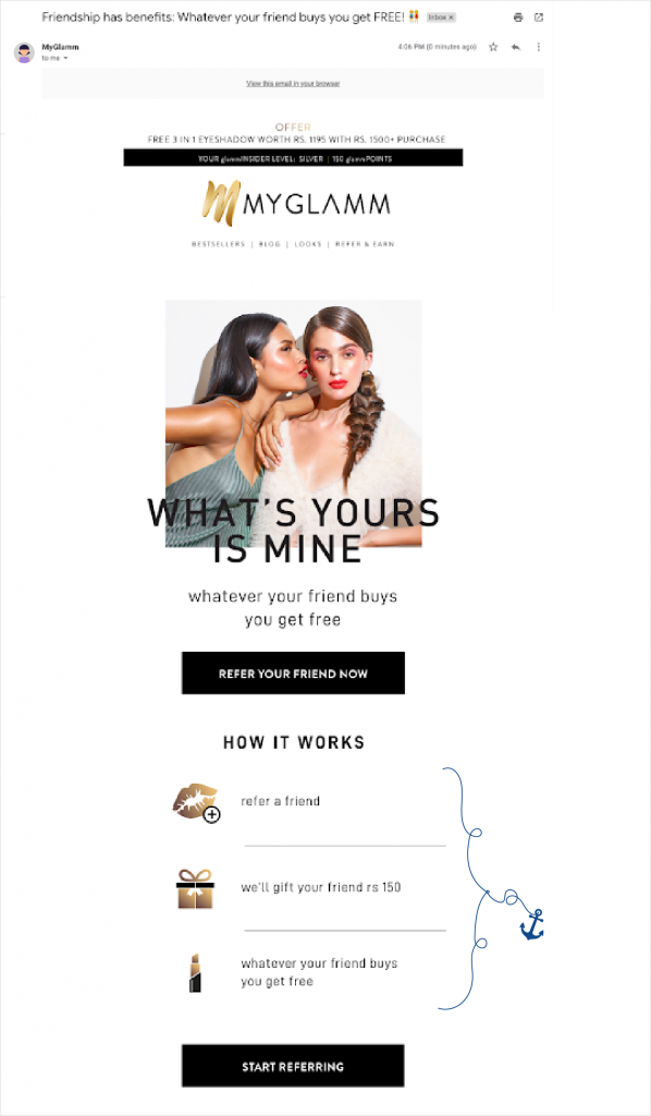 ⚓So this time the hook was friendship. The user got store credits every time she referred to a friend.