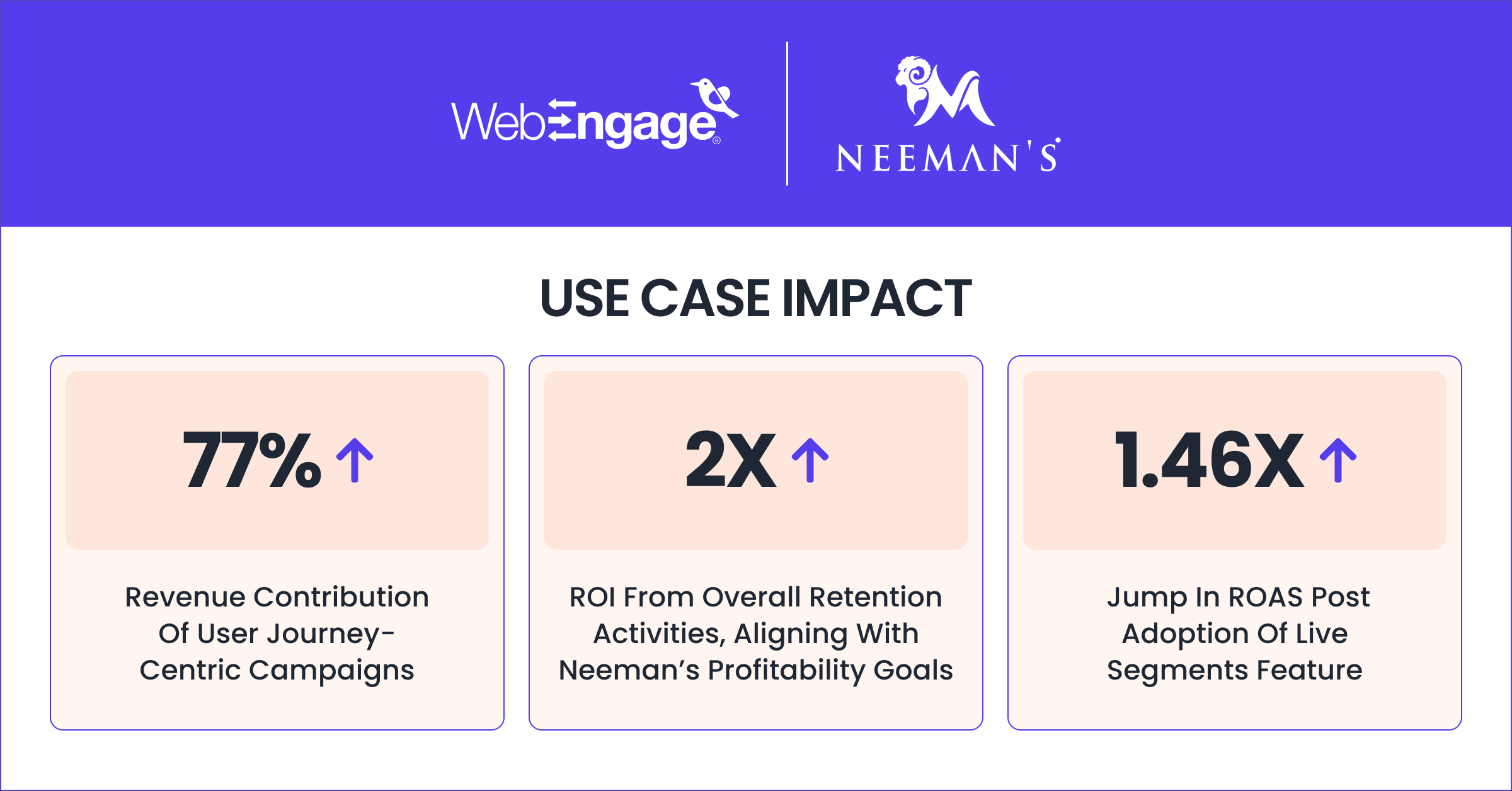 Neeman’s selected WebEngage as its marketing automation platform because of our well-rounded automation, user-friendly features, ease of integration, scalability, and customer support.