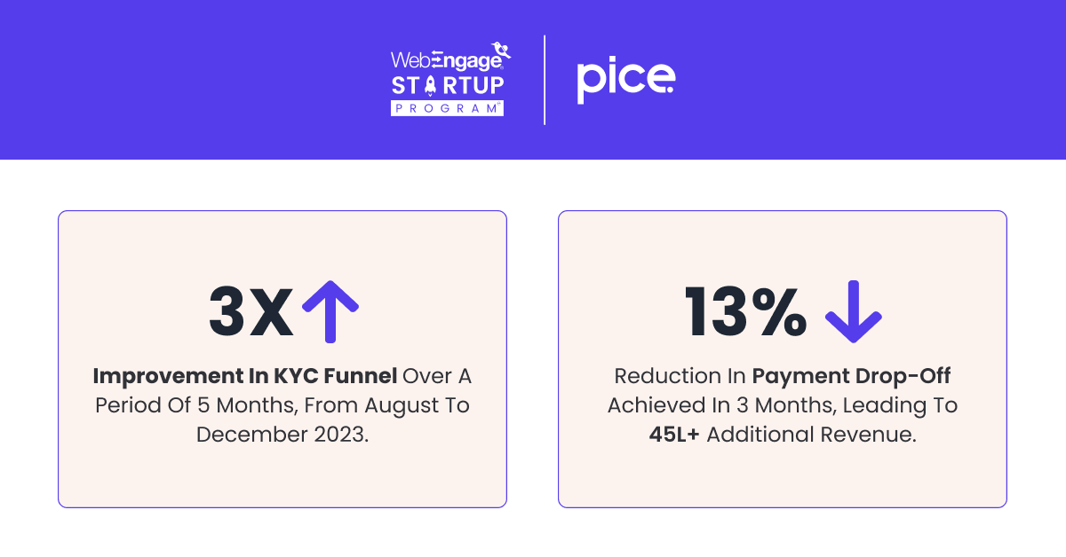 The Pice team chose WebEngage as their marketing automation platform because they were drawn by the WebEngage Startup Program, which offered relevant features and support for their growing business. While the team was also considering other tools at the time, WebEngage stood out due to its high recommendations from other WebEngage customers.