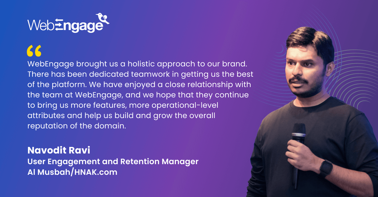 Before onboarding WebEngage, HNAK faced multiple challenges regarding reaching the right audience and the ever-rising costs of user acquisition. This is where WebEngage stepped in. Its competitive pricing, the sales team’s dedicated and unambiguous approach, and the WebEngage team’s knowledge about the product and the tools sealed the deal for the E-commerce brand.