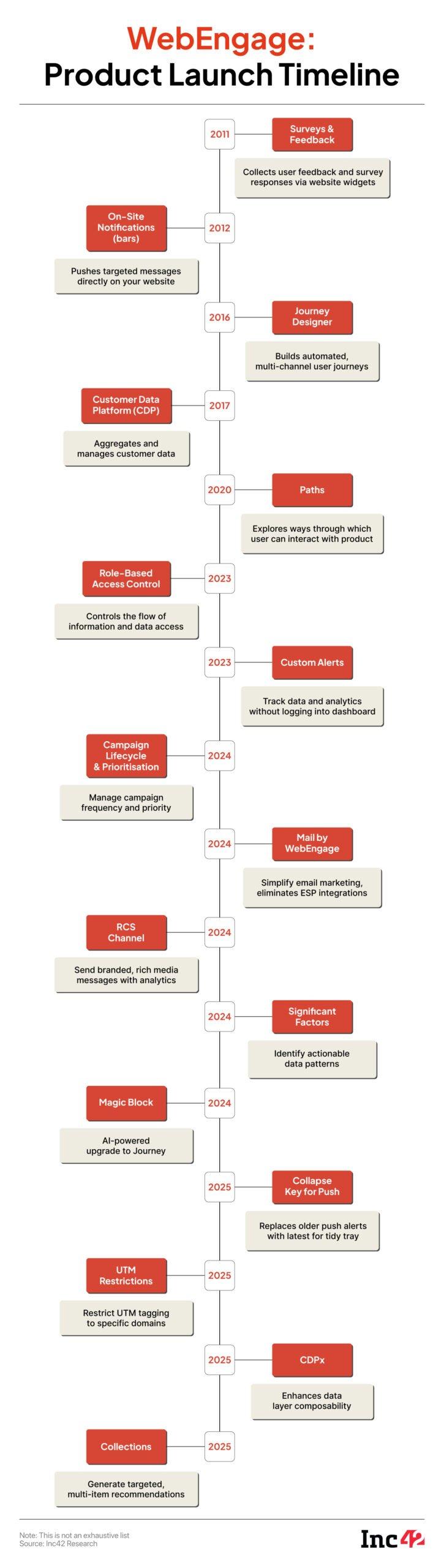 Between 2011 and 2014, WebEngage transitioned from a basic nudge engine to a conversion rate optimisation (CRO) platform aimed at improving website funnel performance. As smartphone usage increased and customer communication shifted to push notifications and in-app messages, the company began to focus on user retention.