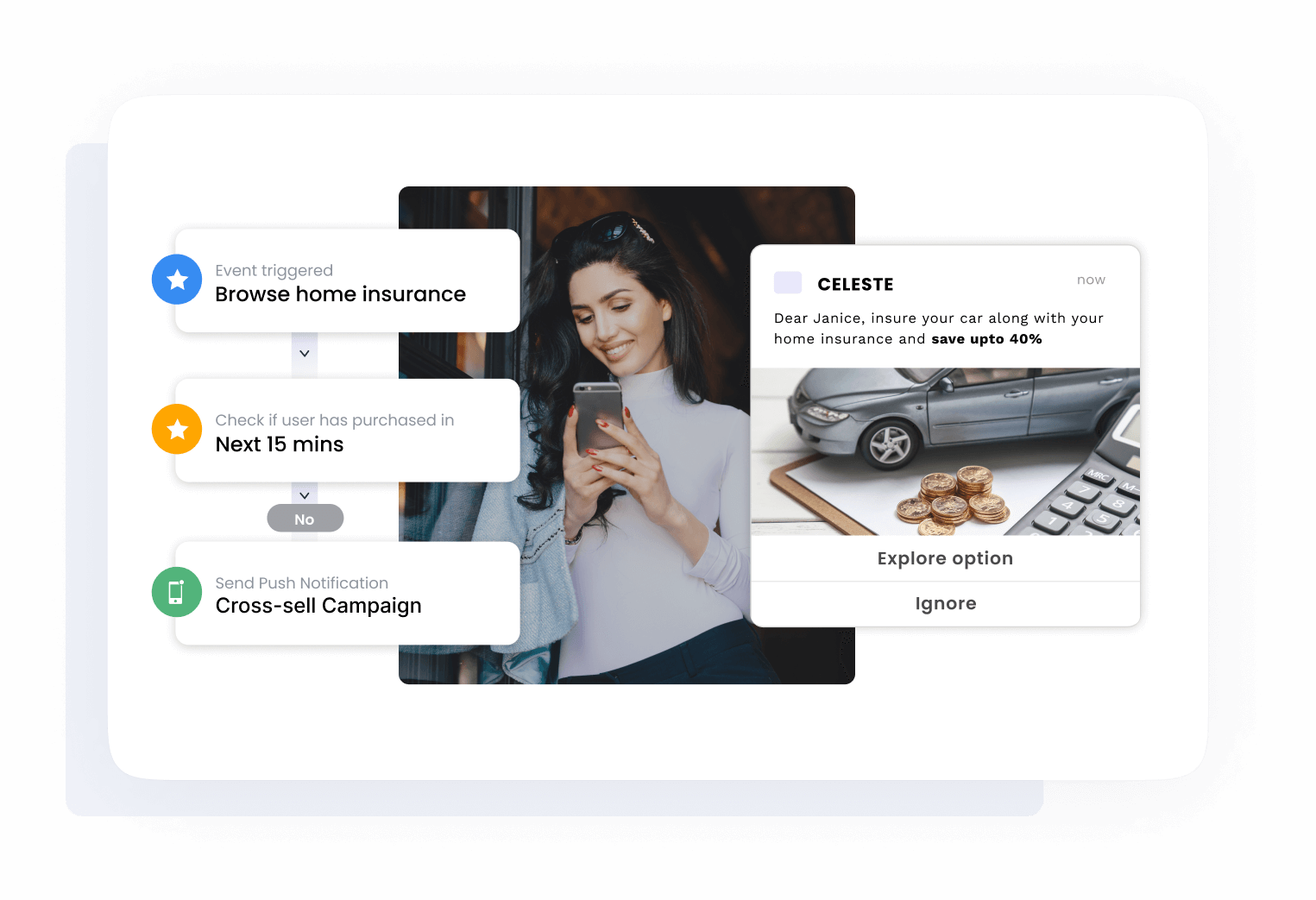WebEngage’s CDP gives you a 360-degree view of your policyholder’s likes and dislikes. Use this information to drive cross-sell and up-sell campaigns.