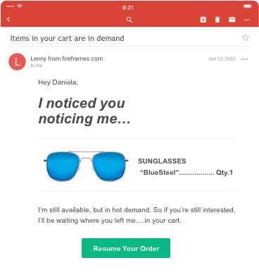 Recover those abandoned cart sales by persuading users with personalized communications to complete their pending purchases. Triggered messages have been proven to reclaim lost revenue by up to 42%