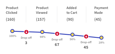 Visualize where your users go when they land onto your homepage or what they do after searching for an item. Identify the stages where they drop off and clear bottlenecks to improve your conversions.