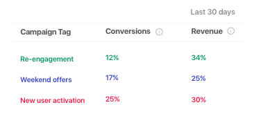 Create highly targeted, cross-channel campaigns that show hyper-personalized content based on customer’s past purchases or offers from their favorite brands. Measure how those campaigns directly impact your KPIs to keep improving upon them.